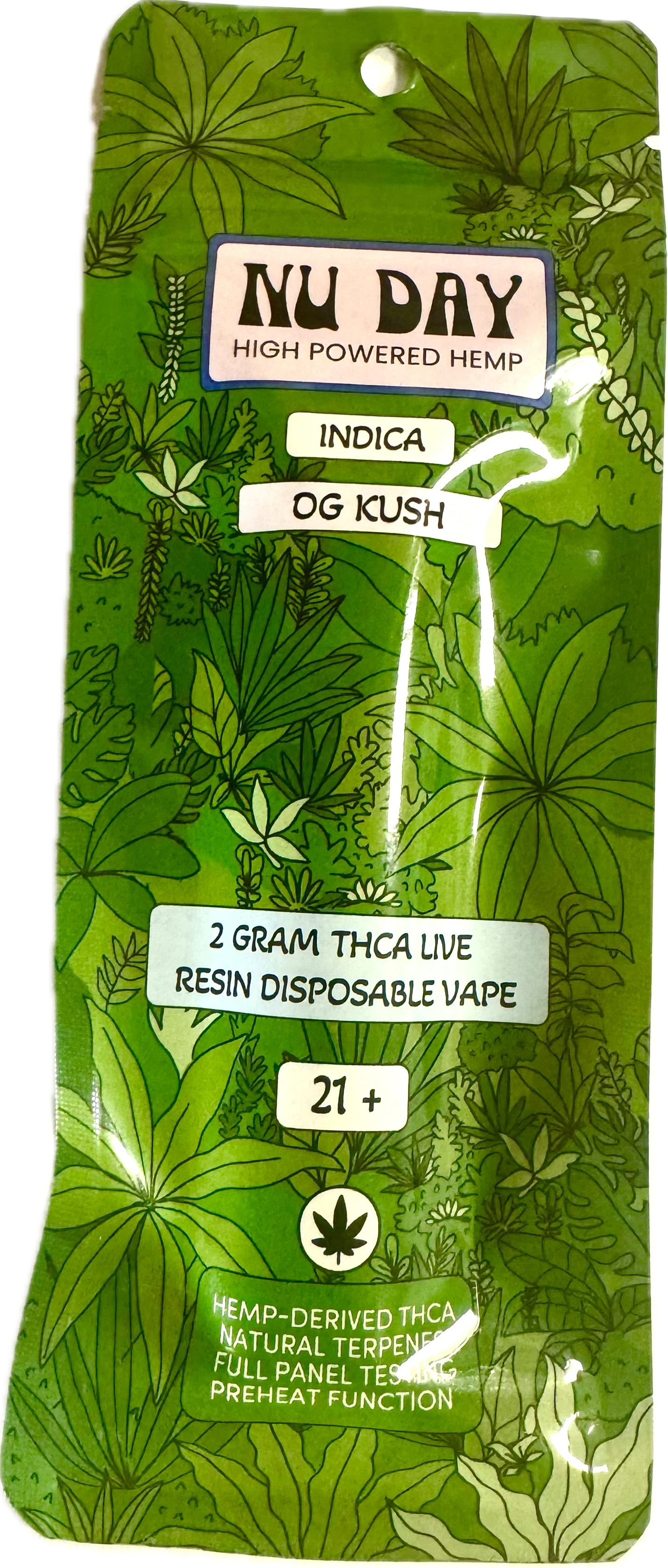 Nu Day’s High Powered Hemp THCa Live Resin Disposables deliver a premium vaping experience with bold flavor, smooth clouds, and powerful effects. Each device is packed with hemp-derived THCa, natural terpenes, and a clean live resin extract that captures the full character of each strain.